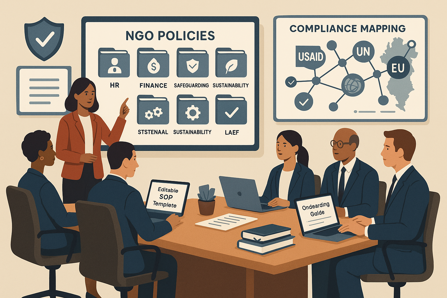 - Compliance checklist aligned with USAID, EU, and UN donors