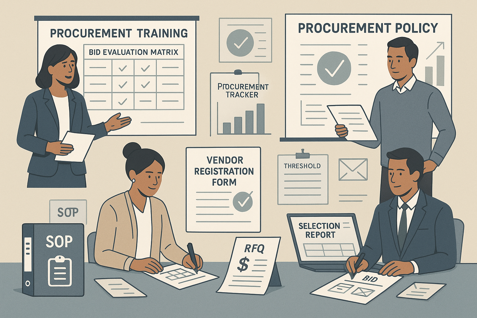 - Procurement planning tools (annual plans, thresholds, trackers)