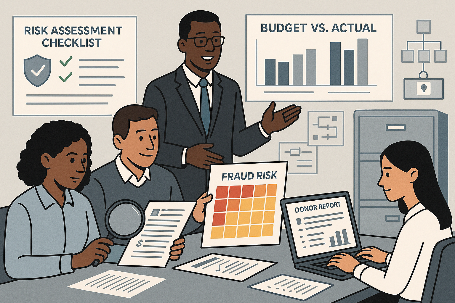 - Simulated external audit or donor assessment