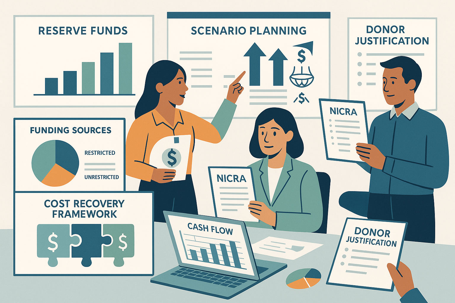 Donors rarely fund everything—and cash gaps can sink even the best programs. This package equips NGOs with the tools to forecast cash flow, build reserves, and design cost recovery strategies that meet donor standards while protecting core operations.