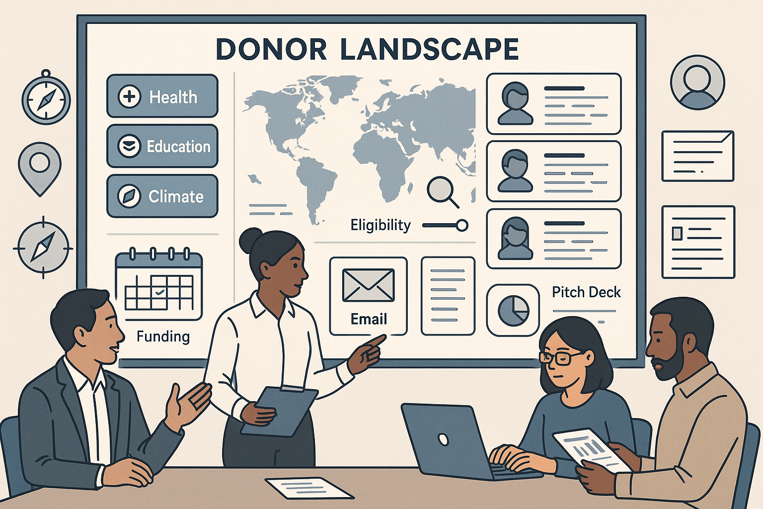 Knowing where to look is half the battle. This package helps NGOs identify the most relevant donors based on their sector, geography, and program focus—and equips them with practical strategies to engage them.