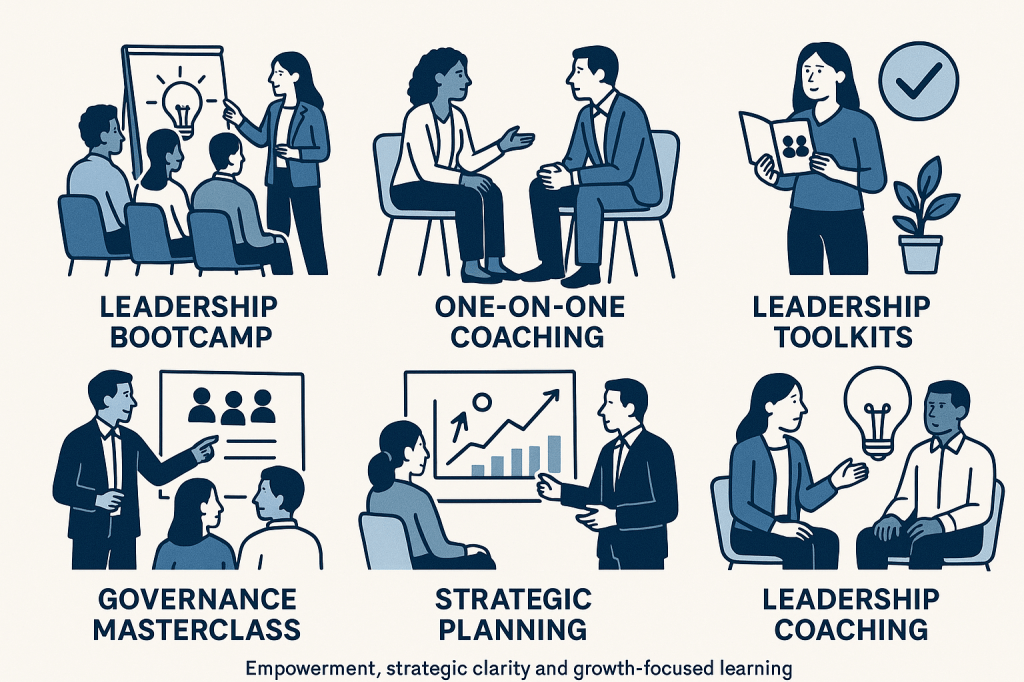 Step confidently into leadership with our practical, growth-focused programs. Whether you’re an emerging leader, aspiring board member, or experienced professional seeking to lead with strategy and influence, we equip you with the tools, coaching, and confidence to grow. Our offerings include intensive bootcamps, 1:1 leadership coaching, self-paced toolkits, governance masterclasses, and certificate pathways. You’ll strengthen your communication, ethical decision-making, strategic planning, and personal leadership voice—preparing you to lead teams, shape institutions, and drive change in any sector. Designed for professionals at every level, these programs blend real-world insights with flexible formats tailored to your leadership journey.