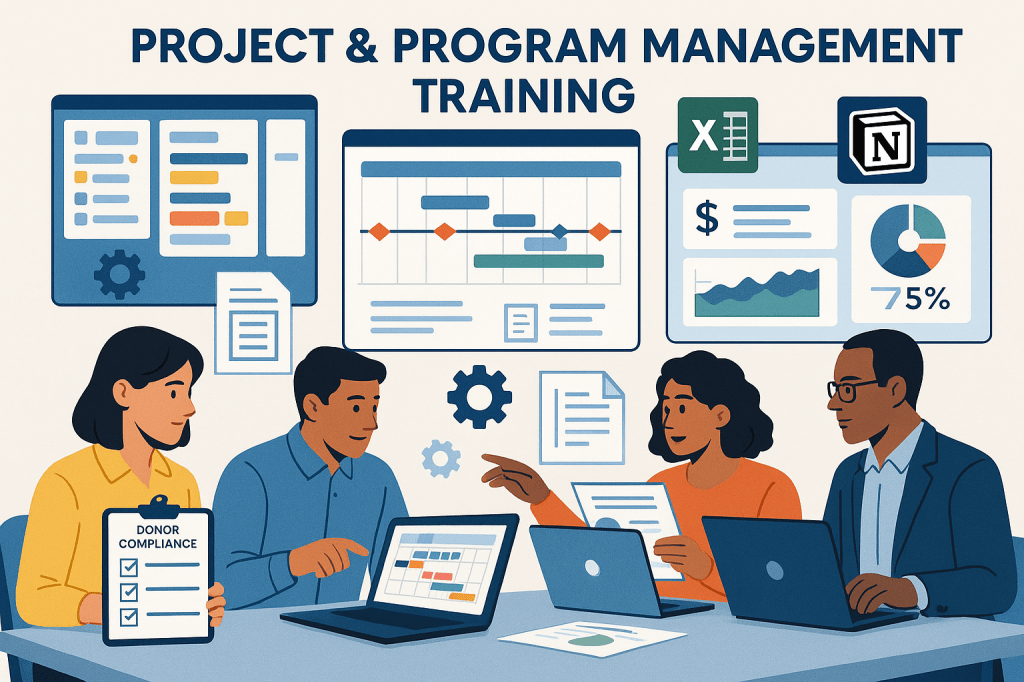 Master the full project lifecycle with our hands-on, globally aligned training. From foundational bootcamps to internationally recognized certifications like PMP® and Project DPro, our programs equip professionals with the tools, frameworks, and confidence to lead complex projects. Learn to design donor-compliant proposals, manage budgets, build Gantt charts, apply agile methods, and navigate real-world delivery challenges. Whether you’re entering the field or aiming for leadership roles, you’ll gain practical experience with tools like Trello, Excel, and Notion—plus deep exposure to donor formats and reporting. These programs are ideal for professionals in NGOs, businesses, and government roles driving results through structured project delivery.