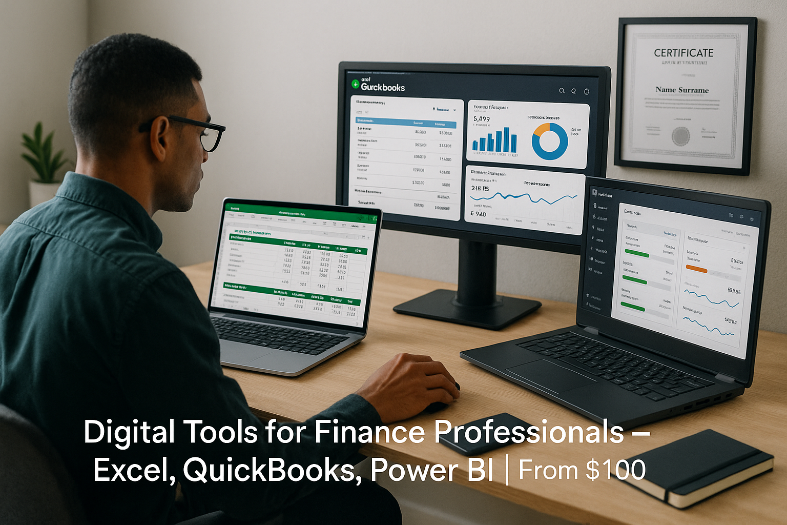 Equip yourself with finance technology. Learn to budget in Excel, track accounts in QuickBooks, and visualize reports with Power BI.