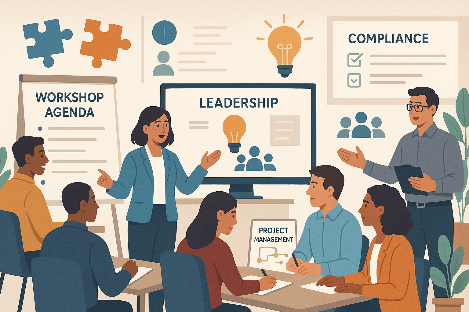 Precisely tailored training programs for your team—exactly when and how you need them. Whether it’s leadership, compliance, project management, or technical skills, our custom-designed workshops ensure immediate and measurable impact.