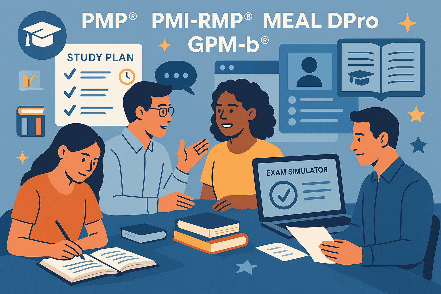 Achieve certification success with fully customized support. Whether PMP®, PMI-RMP®, MEAL DPro, or GPM-b®, we create personalized study plans, provide intensive coaching, and deliver tailored mentoring to ensure you’re exam-ready.