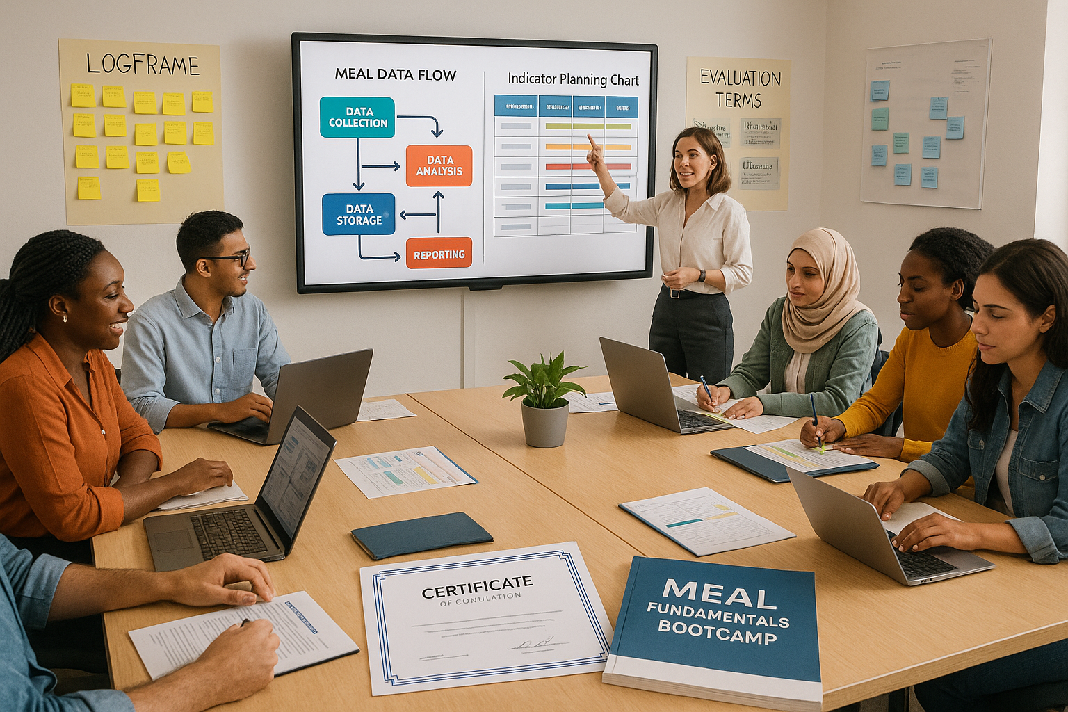 Step into the world of Monitoring, Evaluation, Accountability & Learning (MEAL). This 3-day bootcamp equips you with the basics of MEAL systems, indicators, data flows, and donor reporting.