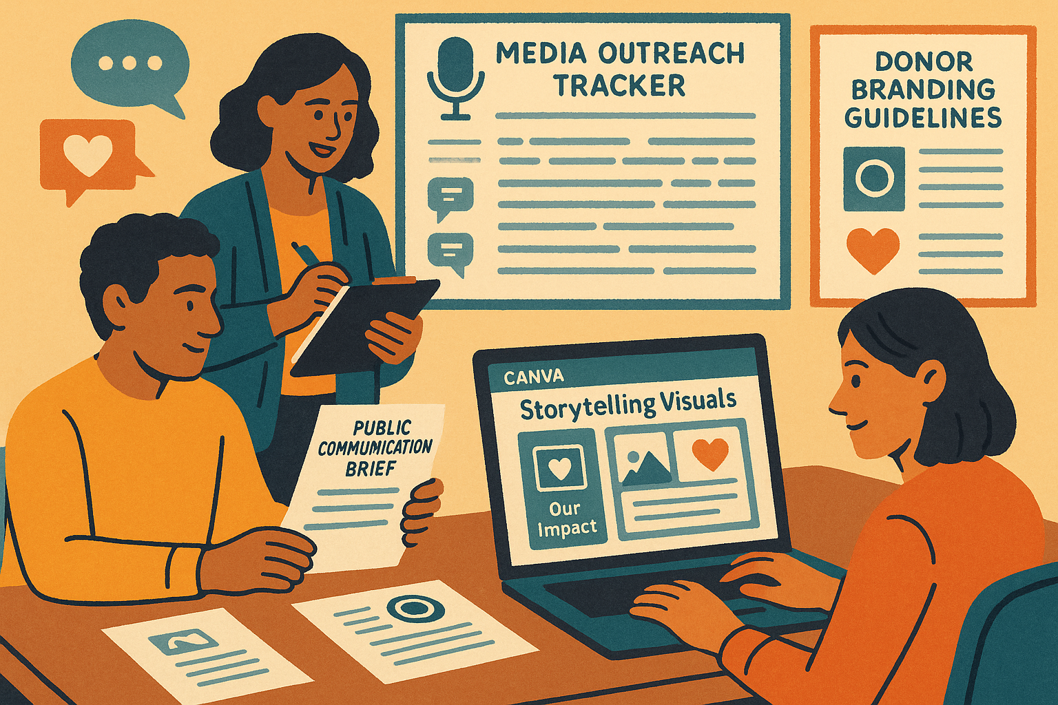 Speak with impact. This course helps you tell powerful stories, comply with donor branding, and grow trust through media and public communication.