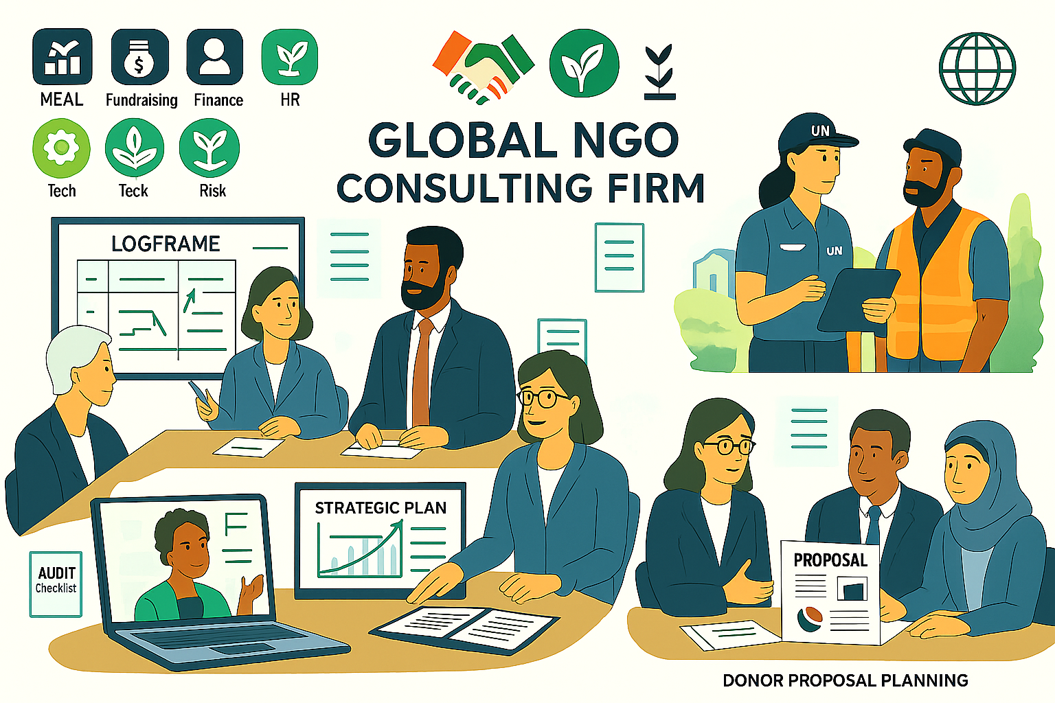 Whether you’re designing your first logframe, preparing for a donor audit, building a board, or planning a flagship multi-year program, we provide the tools, frameworks, and hands-on support to deliver results. Our offerings include customized strategy development, proposal writing, sectoral technical assistance, financial and safeguarding systems, donor compliance audits, digital transformation, and climate-smart programming—all aligned with global donor standards like USAID, UN, and EU.